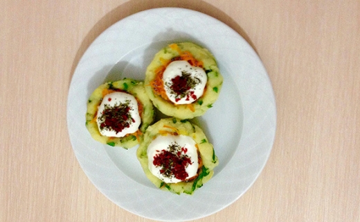 Patatesler güzelce yıkanıp haşlanır. İyice piştikten sonra püre haline getirilip isteğe bağlı baharat ya da tuz ile maydanoz eklenip çanak şekli verilir. Bulgur yıkanıp yarım su bardağı kaynar suda kapağı kapalı olarak 10 -15 dk. Bekletilir. Salça, tuz, karabiber, pul biber, kimyon, sumak, sıvı yağ eklenerek iyice karıştırılıp mısır eklenir. Çay kaşığı yardımıyla çanaklara bölünür. Üzerine rendelenmiş kaşar peyniri serpilir. Fırının kapağı açık olarak üst kısımı yakılarak hazırladığımız patates çanakları fırınlanarak kaşar peynirinin erimesi sağlanır. Üzerine nar ekşisi yanında havuç turşusu ile sunumu enfes. Mutlaka denemelisiniz. Şimdiden afiyet şifa olsun. :)